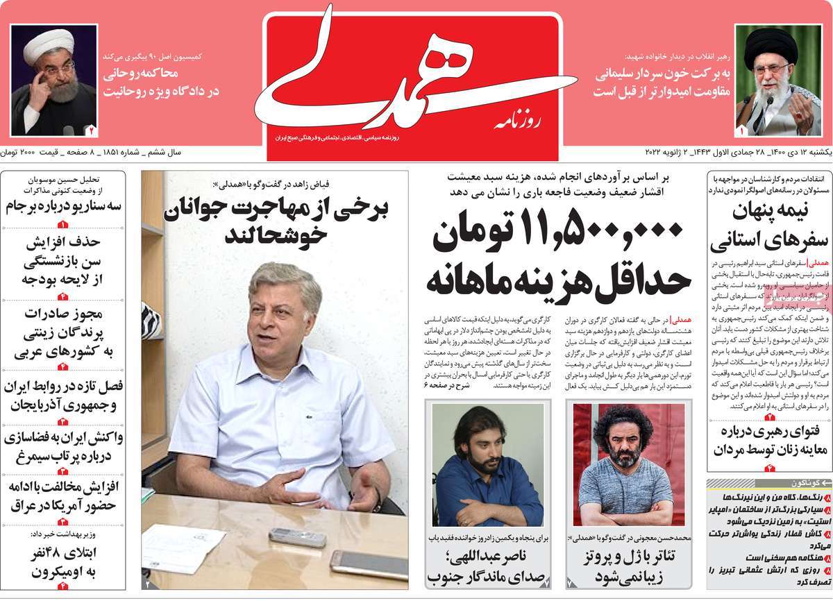 روزنامه همدلی در یادداشتی درباره سفرهای استانی رئیسی با عنوان نیمه پنهان سفرهای استانی معتقد است به رغم اظهارات رئیسی و تبلیغات رسانه های دولتی مبنی بر امید مردم به دولت،واقعیت این طور نیست و در رسانه های دولتی سانسور می شود.
