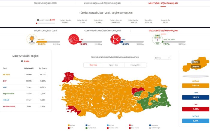 ۱۹:۳۸- بر اساس این نتایج، حزب عدالت و توسعه ۴۷ درصد، حزب جمهوری خواه خلق ۱۶ درصد، حزب حرکت ملی حدود ۱۵ درصد و حزب چپ سبز حدود هشت درصد رای کسب کرده است.