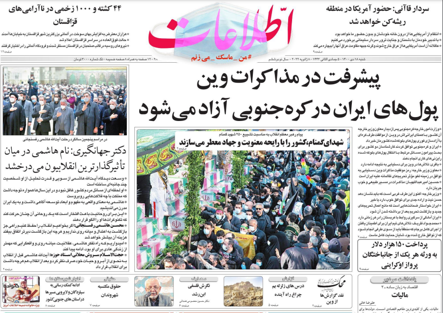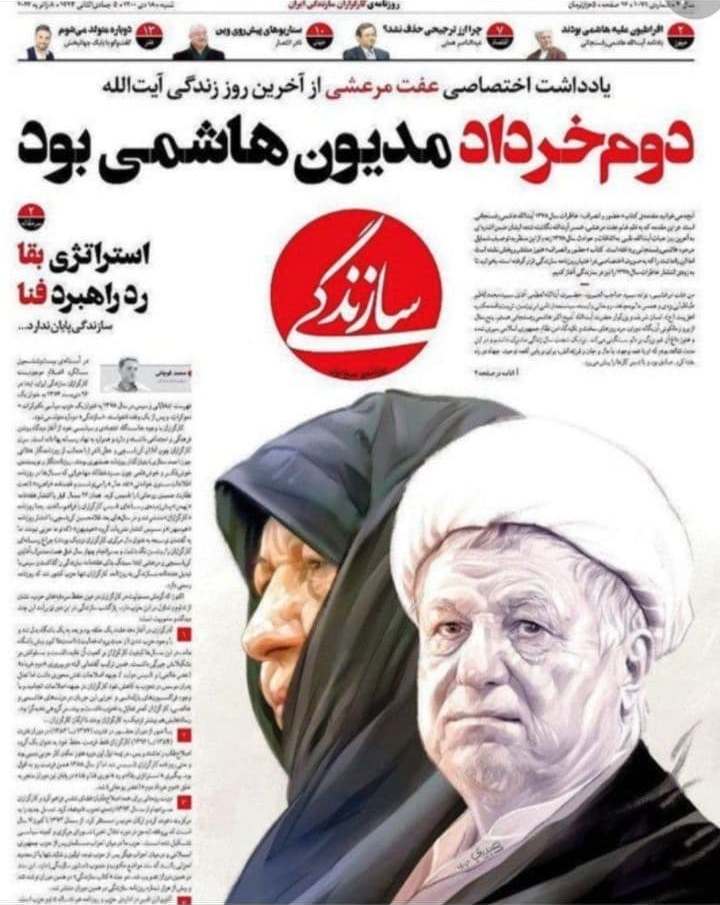 این روزنامه همچنین یادداشتی از عفت مرعشی همسر هاشمی رفسنجانی منتشر کرد که درباره آخرین روز زندگی هاشمی نوشته است روز آخر با هم صبحان خوردیم و چند بار تلفنی صحبت کردیم. حالش خوب بود… وقت رفتنش نبود.