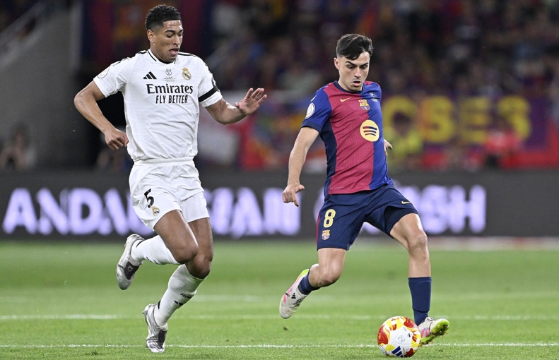 کمتر از ۱۰ دقیقه بعد رئال مادرید توسط بلینگام به گل اول رسید اما داور گل را به دلیل آفساید ستاره انگلیسی مردود اعلام کرد. در دقیقه ۴۴ بارسا میتوانست به گل دوم برسد اما کرنر ارسالی از همه گذشت و به تیرک عمودی دروازه خورد و دفع شد. دو دقیقه از وقتهای اضافه این نیمه گذشته بود که وینیسیوس حرکتی را آغاز کرد و توسط مدافعان بارسا سرنگون شد. او اعتقاد به پنالتی داشت اما داور آفسایدش را گرفت تا نیمه اول با همان یک گل خاتمه یابد. در دقیقه ۴۹ وینیسیوس روی حرکت عالی بلینگام در موقعیتی عالی قرار گرفت اما شزنی هر دو ضربه او را مهار کرد.