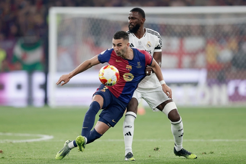 بازی با برتری کامل بارسلونا آغاز شد. در دقیقه ۲ پاس خطرناک فران تورس میرفت که به رافینیا برسد اما مدافعان رئال توپ را دفع کردند. پیش از دقیقه ۱۰ رئال با اولین بدشانسی مواجه شد و فرلان مندی به دلیل مصدومیت جایش را به فران گارسیا داد.