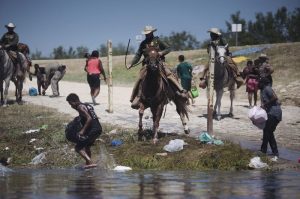 (دل ریو، تگزاس، ۱۹ سپتامبر) نیروهای پلیس مرزی تگزاس مردمان هاییتی را که با هدف ورود غیرقانونی به آمریکا در شهر مرزی دل ریو کمپ زده بودند، به کشورشان راندند و راه دیگر مهاجرانی را که قصد ورود از مرز مکزیک داشتند، سد کردند/ اریک تایر، بلومبرگ