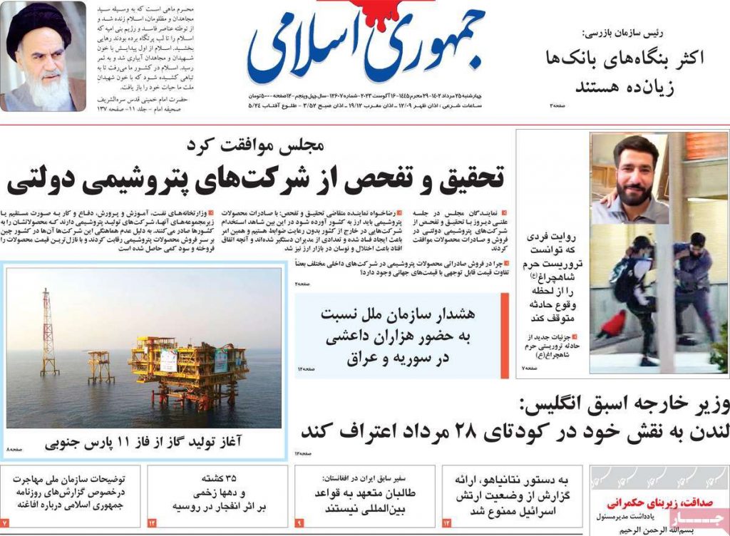 رصد خبر | انفجار در تاسیسات نظامی در اسراییل با کلید واژه “تیر غیب” وشکاف در جبهه اصلاحات از محورهای مورد توجه روزنامههای حامی دولت در شماره امروز ۲۴ مرداد بود.