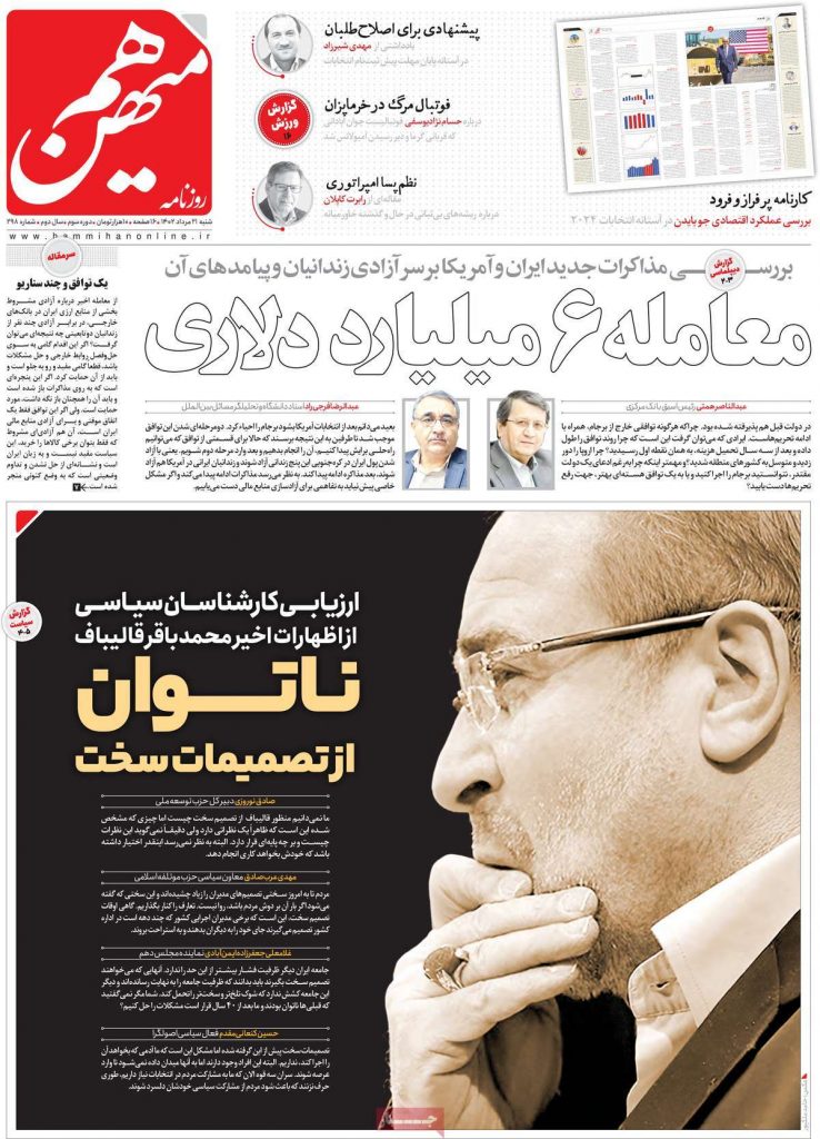 رصد خبر | روزنامههای حامی و منتقد دولت در شماره امروز ۲۱ مرداد توافق ایران و امریکا برای مبادله زندانیان و آزادسازی بخشی از داراییهای ایران را با دو نگاه متفاوت مورد توجه قرار دادهاند.