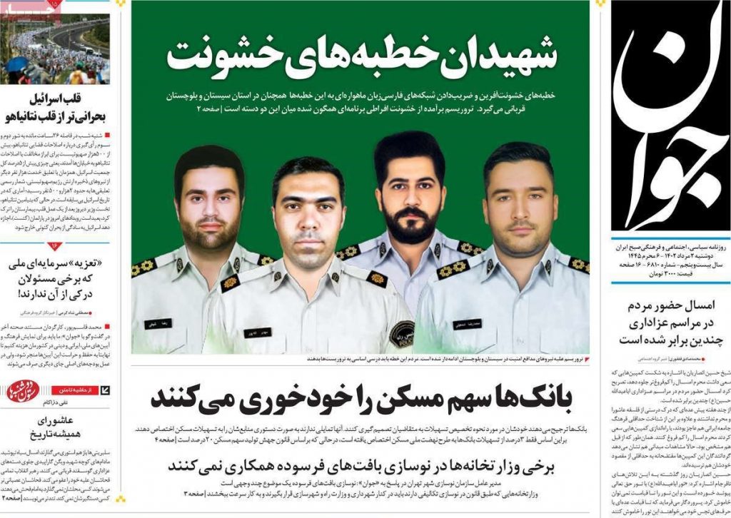 رصد خبر | سه محور برجسته در روزنامه‌های اصلی حامی دولت در شماره امروز ۲ مرداد شامل شهادت ۴ نیروی پلیس راه زاهدان، تظاهرات اعتراضی در اسراییل و توهین به قرآن و حمایت دولت‌های غربی از آن بود.
