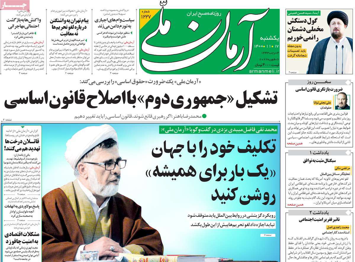 روزنامه آرمان ملی لزوم اصلاح قانون اساسی در این مقطع زمانی را مطرح کرد و نوشت که بستر سیاسی ، اقتصادی، اجتماعی ، فرهنگی و حقوقی برای بازنگری در افکار عمومی فراهم است.