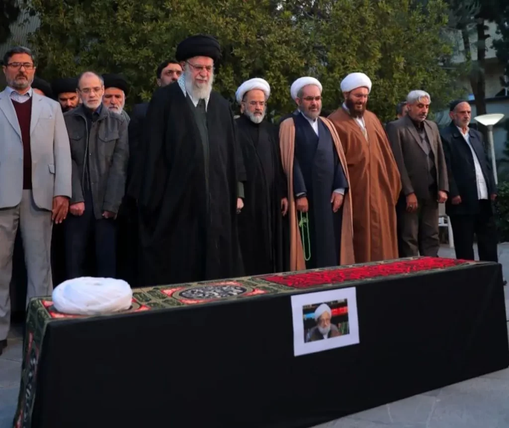 اقامه نماز رهبر انقلاب بر پیکر آیت‌الله امامی‌کاشانی