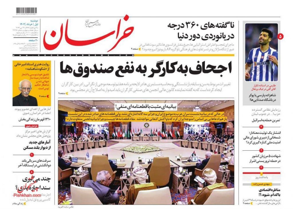 رصد خبر | طرح اتهامات علیه ایران در اتحادیه عرب، انتقاد از محتوای لایحه عفاف و حجاب ، دروغ و جعل سند در فوتبال ، تورم در برنامه ، تعداد اندک اعضای جبهه پایداری ، اختلاف میان اصولگرایان و ادامه جو یاس از محورهای مطالب  دوشنبه ۱ خرداد ۱۴۰۲ روزنامه‌های ایران است.