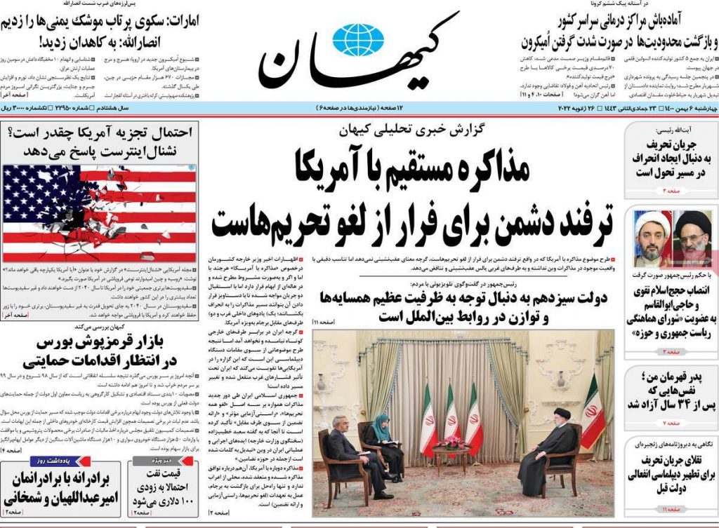 این روزنامه نوشت: اعلام امکان مذاکرات مستقیم با طرف آمریکایی در زمان فعلی با توجه به آن که در دورنمای مذاکرات با شرایط مطلوب فاصله داریم به مصلحت نبود.
