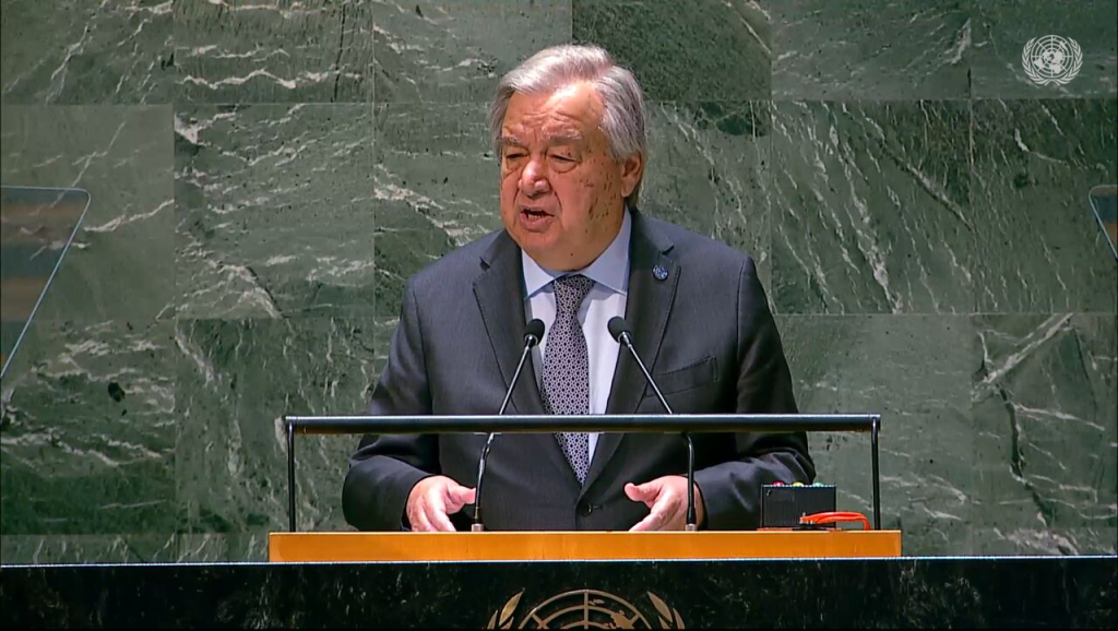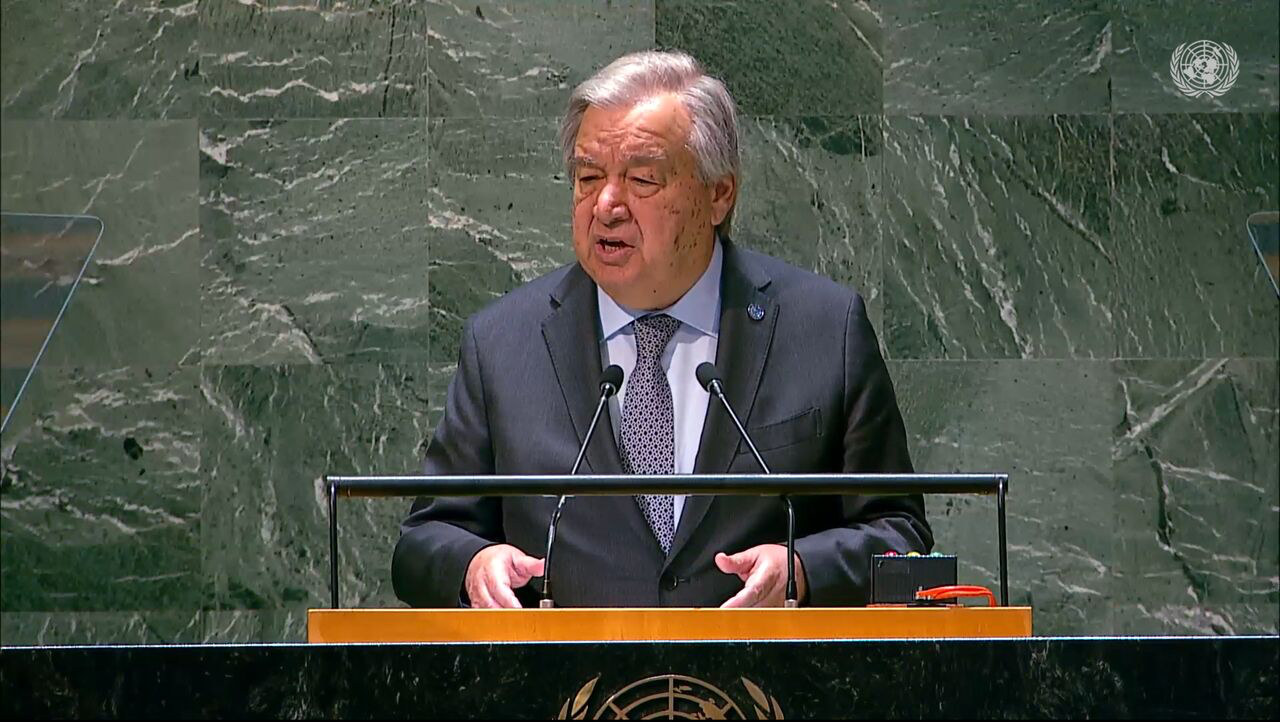 آنتونیو گوترش دبیرکل سازمان ملل در این مراسم یگفت: ما تنها چند روز پس از حادثه دلخراش ۱۹ اردیبهشت که جان سید ابراهیم رئیسی رئیس جمهوری اسلامی ایران و هیات همراه از جمله حسین امیرعبداللهیان وزیر امور خارجه و هفت نفر دیگر را گرفت، دور هم جمع می شویم.