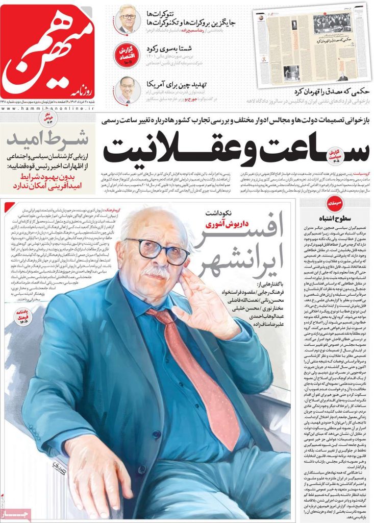مصوبه مجلس در خصوص لغو تغییر ساعت در ابتدای سال از تصمیمات نوع دوم است. تصمیمی مغایر با عقلانیت و نظر کارشناسی و صرفاً براساس توهمات که نتیجه منفی آن را اکنون و حتی سال گذشته در جریان ضرورت صرفه‌جویی در مصرف برق دیدیم، ولی دریغ از یک اقدام کوچک برای اصلاح آن مصوبه نادرست و ضدعلمی؛ مصوبه‌ای که دولت به‌جای مخالفت با آن و درخواست عدم تصویب آن، سکوت کرد و حتی هنوز هم برای لغو آن اقدام نکرده است و به‌جای اقدام برای اصلاح آن، ساعات کار را برخلاف دیگر وجوه زندگی عادی مردم، دو ساعت عقب کشیده است و جریان زندگی معمول جامعه را دچار اختلال کرده است. تا اینجای کار را می‌توان تا حدودی فهمید، ولی اصرار بر آن مصوبه غیرمنطقی و سکوت دولت در مقابل آن، نشان می‌دهد که مبنای این‌گونه مصوبات و تصمیمات؛ عواملی جز خیر عمومی و نفع جامعه است.