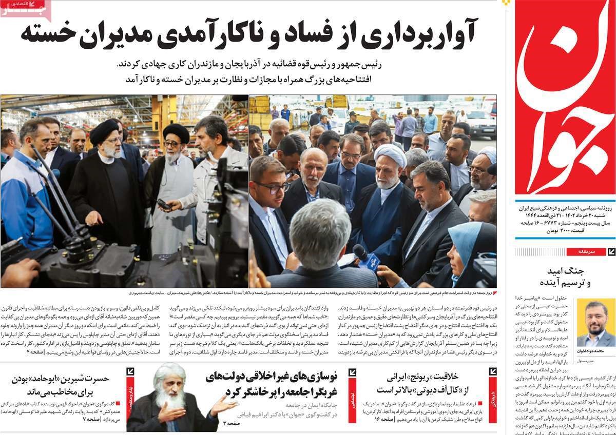 از زمان روی کارآمدن دولت سیزدهم، بارها شاهد اخبار امیدبخش و خوشحال‌کننده به واسطه عملکرد دولت بوده‌ایم، از خوزستان تا سیستان و بلوچستان و از کردستان تا خراسان شمالی. اما این جلوه‌های امیدبخش از یک‌سو توسط رسانه‌های معاند و از سوی دیگر توسط رسانه‌های مدعی اصلاحات در داخل سانسور شده است.مطالبه قاطبه ملت عزیز ایران این است که با شبکه همکار با دشمن در داخل کشور که «امید» مردم را نشانه گرفته‌اند، قاطعانه و بدون اغماض برخورد شود.