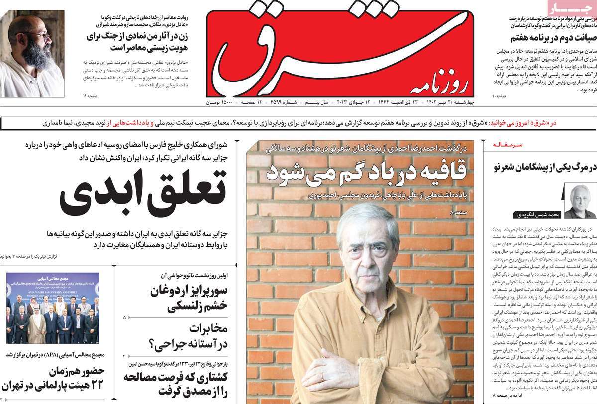 رصد خبر | نقطه تقابل روزنامه‌های امروز ۲۱ تیر بیانیه مشترک شورای همکاری و روسیه در حمایت از موضع امارات درباره جزایر ۳ گانه ایران است.