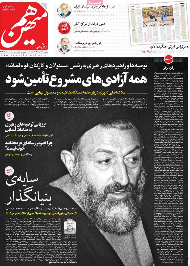 رصد خبر | بیانات رهبر انقلاب در جمع کارکنان دستگاه قضایی از سوی اکثر روزنامه‌های امروز به عنوان تیتر نخست کار شده ، اما هر روزنامه بخش متفاوتی را برجسته کرده است.
