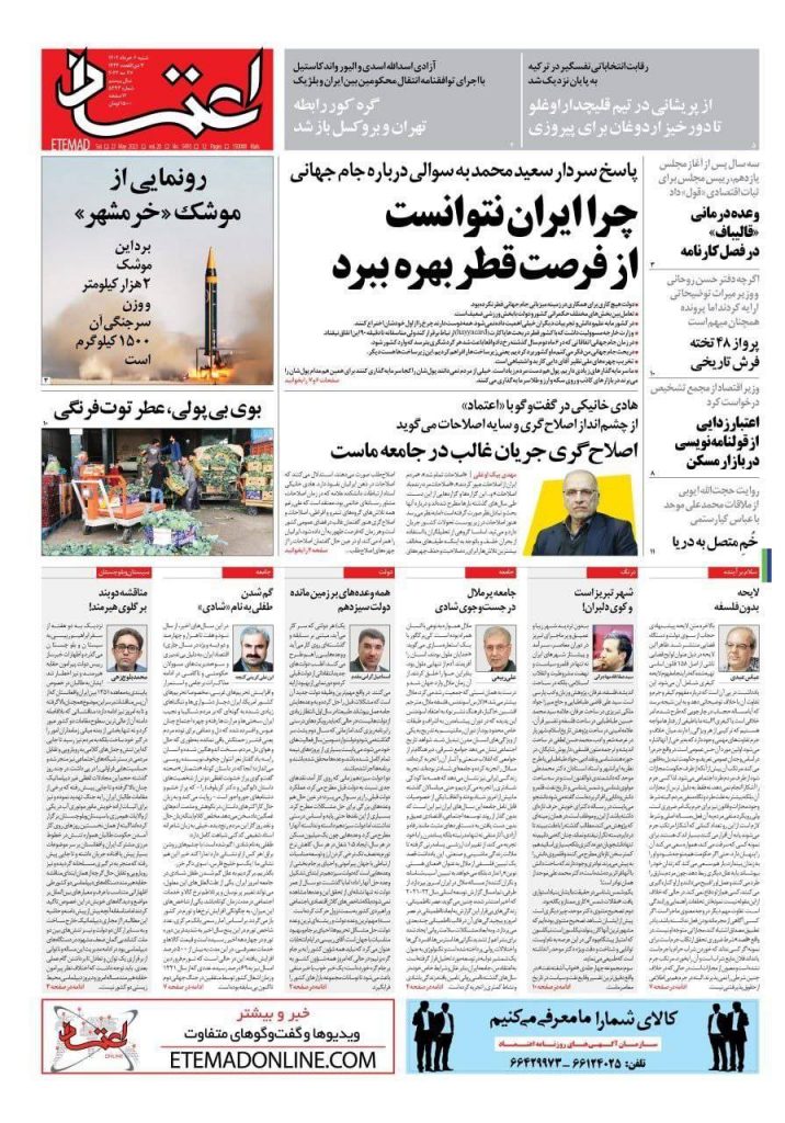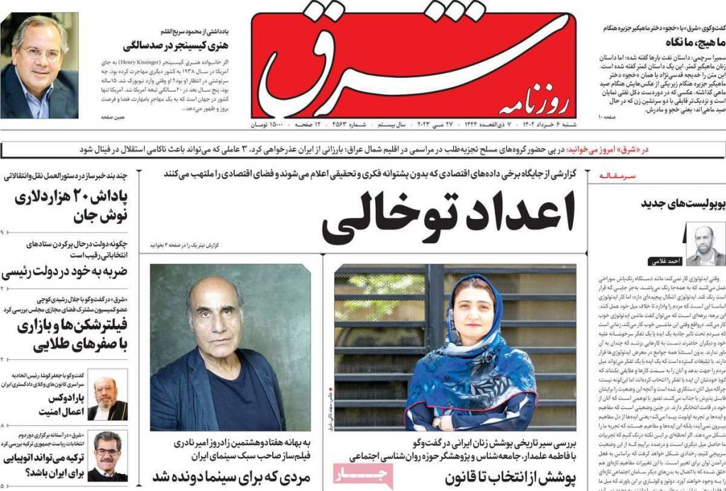 رصد خبر | درخواست از دولت و قوه قضائیه برای پس گرفتن لایحه عفاف و حجاب، وعده های قالیباف در فصل کارنامه، مفقود شدن ۴۸ تخته فرش در سعدآباد و انتقاد از مجازات تبعید تحصیلی از محورهای مطالب روزنامههای صبح شنبه ۶ خرداد ۱۴۰۲ بود.