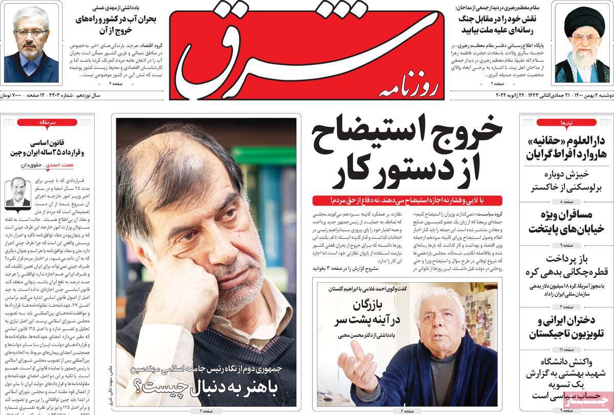 روزنامه شرق نوشت که با لابی و فشار اجازه استیضاح وزیران را در مجلس نمی دهند و استیضاح را از دستور کار خارج می کنند.