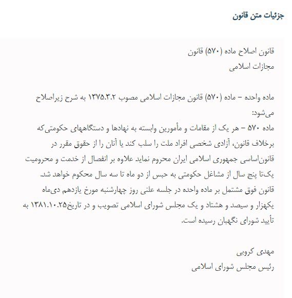 اما مطابق ماده ۵٧٠ قانون مدنی ایران سلب آزادی مشروع افرادتوسط مقامات و مأموران رسمی جرم و مستحق مجازات دانسته شده. یعنی مسالهای که ماجرای رخ داده در مشهد مصداق آشکار و واضح آن است.