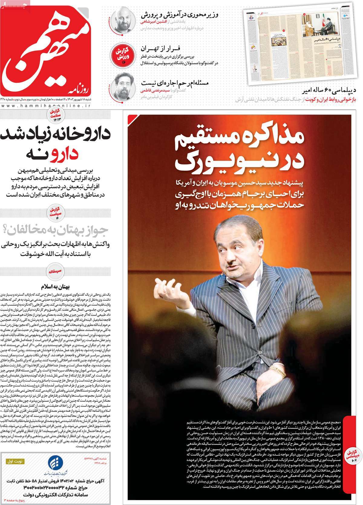 بجای آن، مطبوعات منتقد دولت در صفحات نخست به نقل قول منتسب به آیتالله خوشوقت درباره مخالفان ولایت فقیه ، مذاکرات ایران و آمریکا، توقیف سایت انتخاب ، نقد سخنان رئیسجمهور درباره مهار تورم و کسری بودجه نامه سرگشاده احمد توکلی در رد مصوبه مولدسازی و آرایش جناحها در انتخابات پیش روی مجلس شورای اسلامی پرداختند.