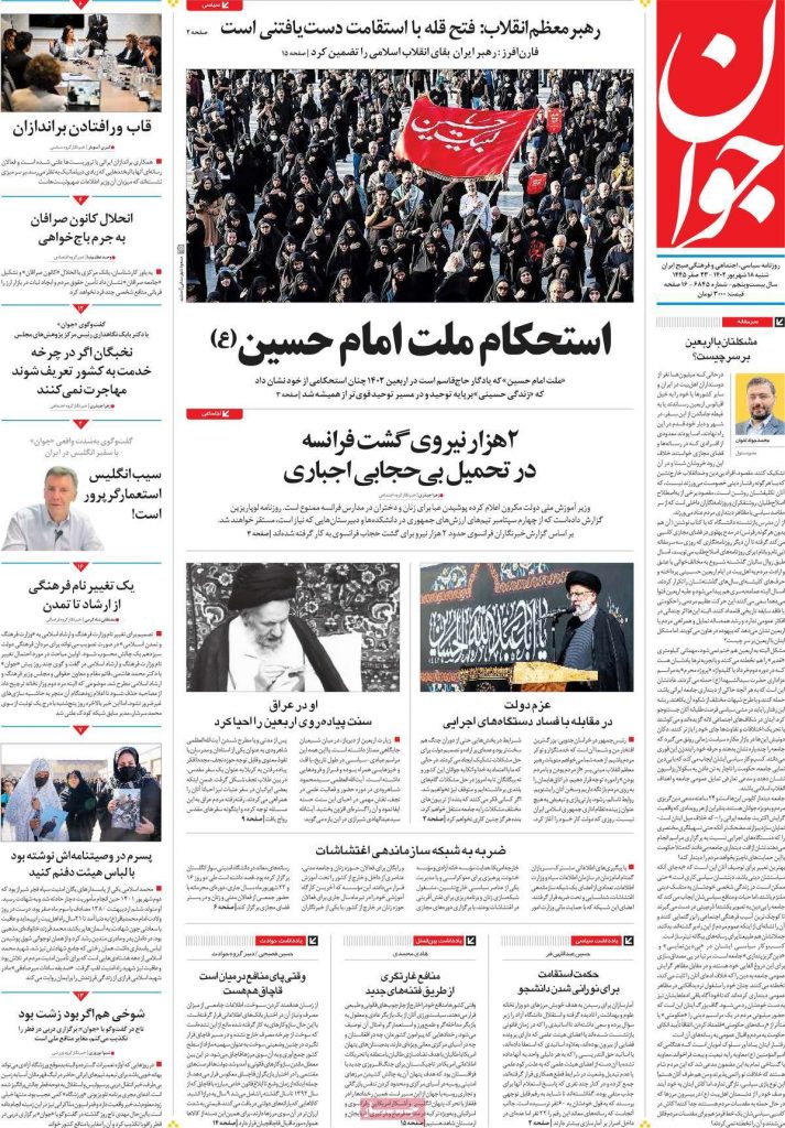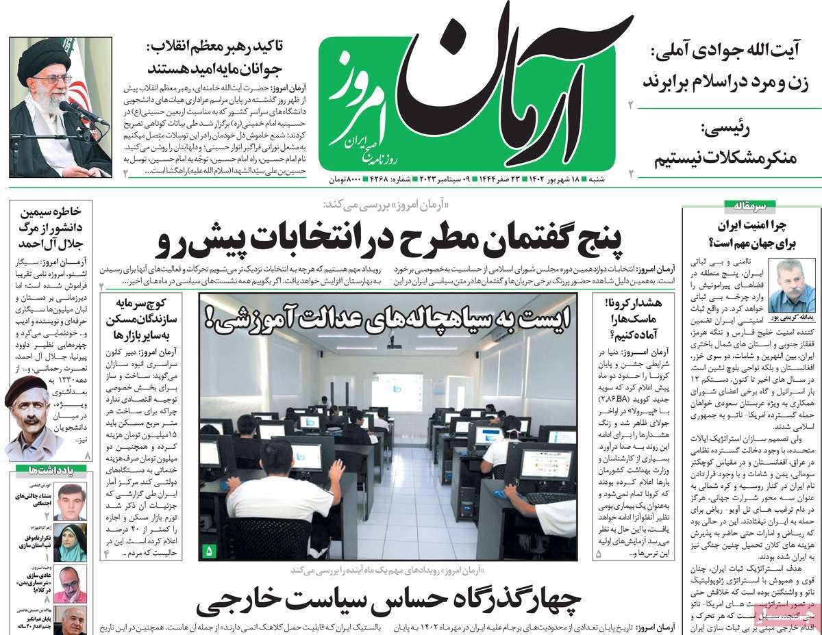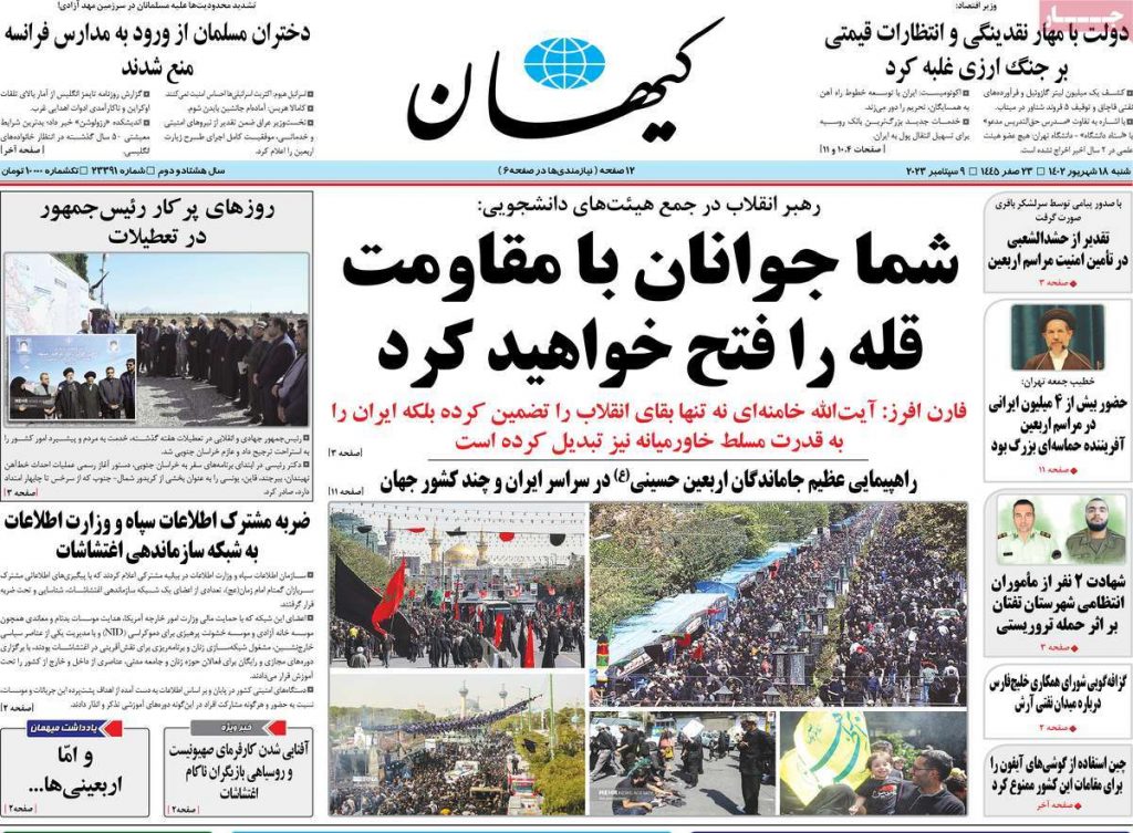 بیانات رهبر انقلاب درباره مقاومت جوانان ، ضربه مشترک سپاه و وزارت اطلاعات به شبکه سازماندهی اغتشاشات و سانسور راهپیمایی اربعین توسط رسانههای معاند و خارجی از تیترهای روزنامههای اصولگرا در روز شنبه ۱۸ شهریور بود.